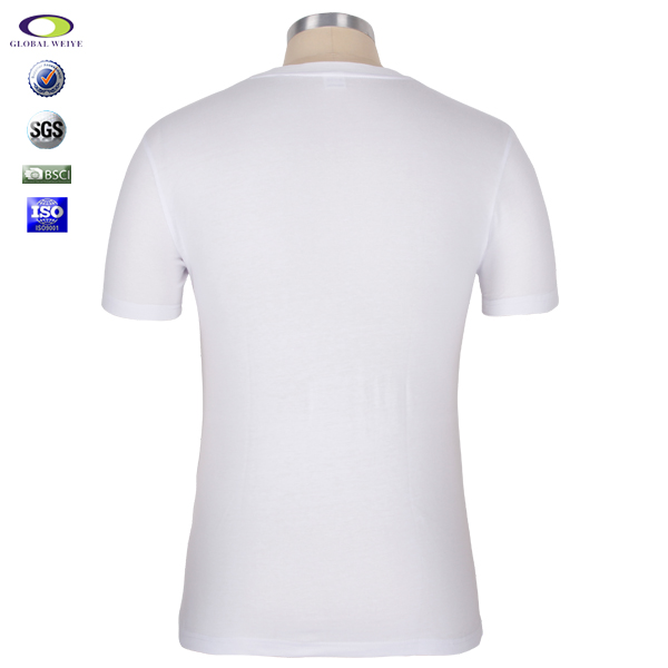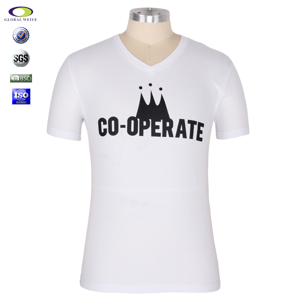 单色丝网印男士白色V领短袖纯棉T恤 |