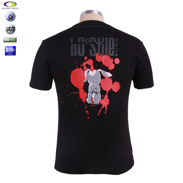 黑色全棉男士圆领印花T恤,环锭纺精梳棉布料,柔软舒适,透气性好,不掉色,不脱落,牢固丝网印花