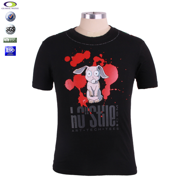 黑色全棉男士圆领印花T恤 |