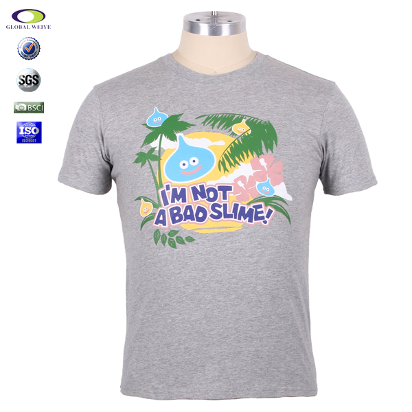 卡通印花麻灰色男士全棉圆领T恤,环锭纺精梳棉布料,柔软舒适,厚度适中,不掉色,不脱落,牢固丝网印花