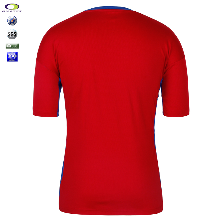 定制男士红色异色领空白网眼短袖T恤衫定制厂家