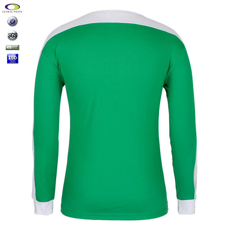 定制男士绿白拼接长袖运动服全涤网眼T恤衫定制工厂