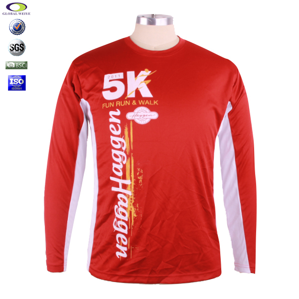 定制男士红色全涤圆领印花长袖运动服T恤衫定制厂家 |