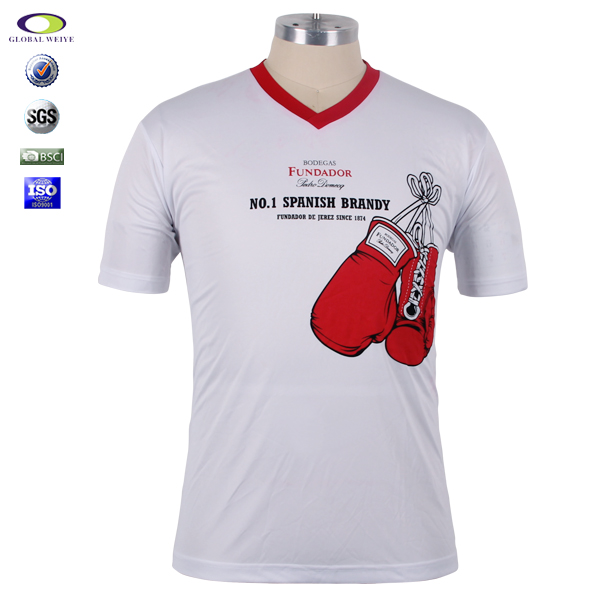 定制男士全涤V领白色印花宣传短袖T恤衫定制厂家 |