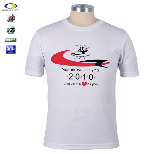 男士白色圆领全涤运动宣传印花短袖T恤衫订制厂家