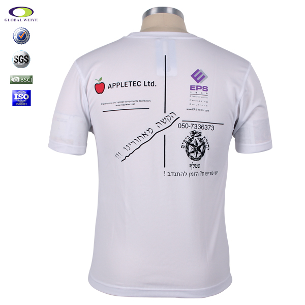 网站首页  > POLOT恤  > T恤  > 男士T恤  >  男士白色圆领全涤运动宣传印花短袖T恤衫订制厂家