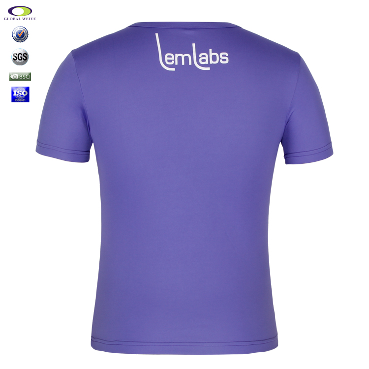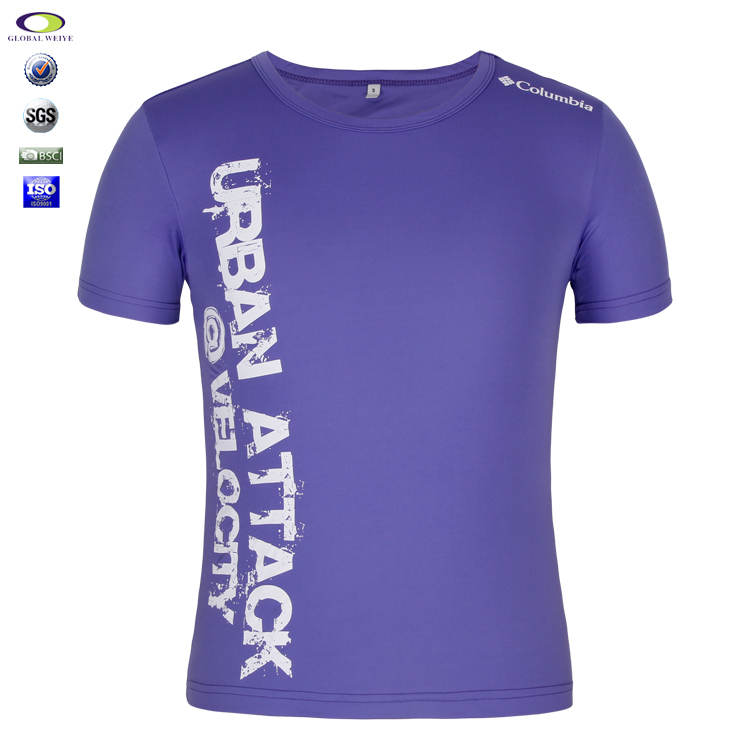 男士紫色全涤字母印花圆领短袖T恤衫定制厂家