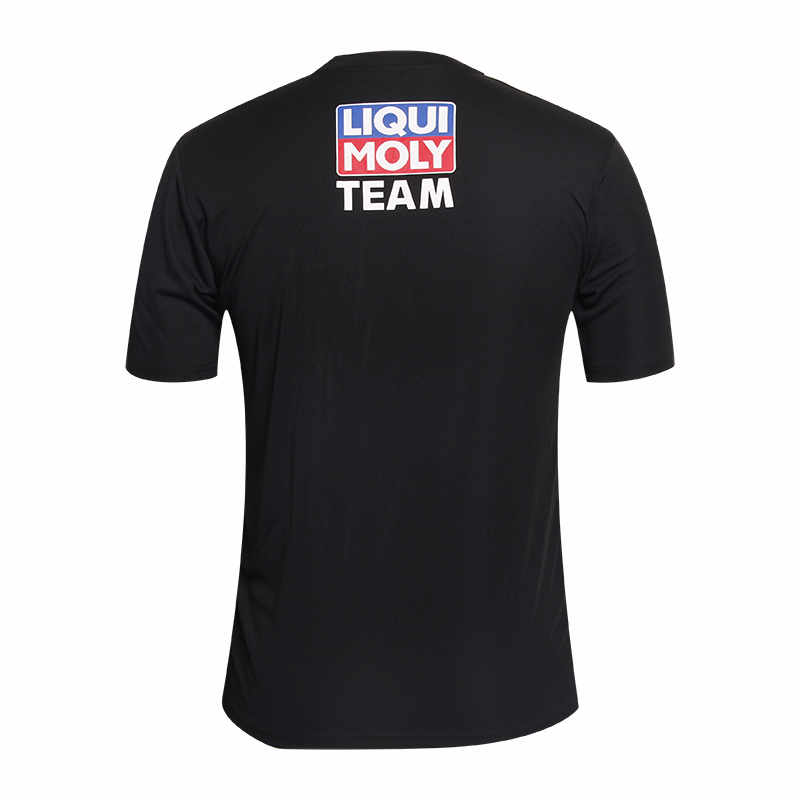 男士黑色全涤字母印花V领短袖T恤衫,采用全涤速干面料,舒适耐穿,高性价比, 专业纸样 标准裁剪,前后幅丝网印logo 经典短袖时尚V领领款式。