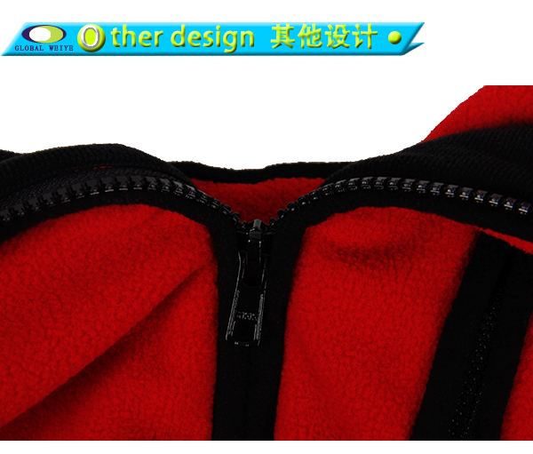 This coat jacket mens is made of brown and red. the front of the body is red and the back is black. then the collar and hem of the sleeve are all black. the whole body is made of polar fleece.