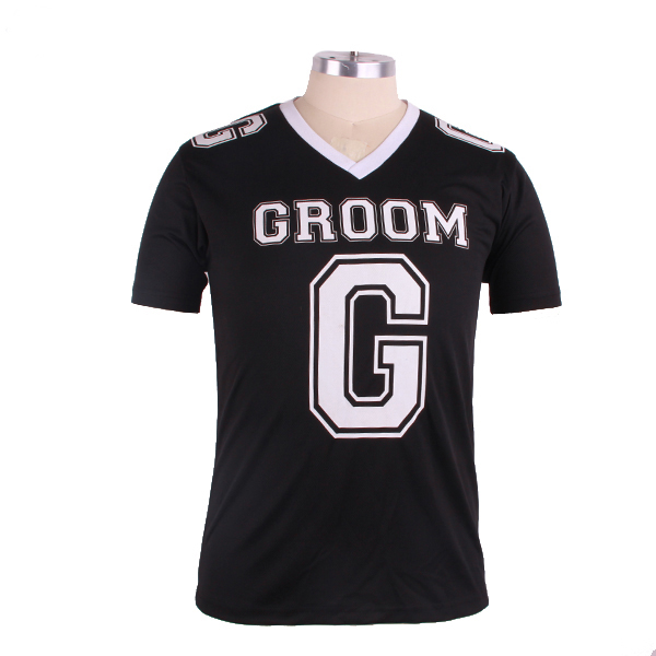 订制男士全涤V领印花T恤衫篮球运动服套头短袖