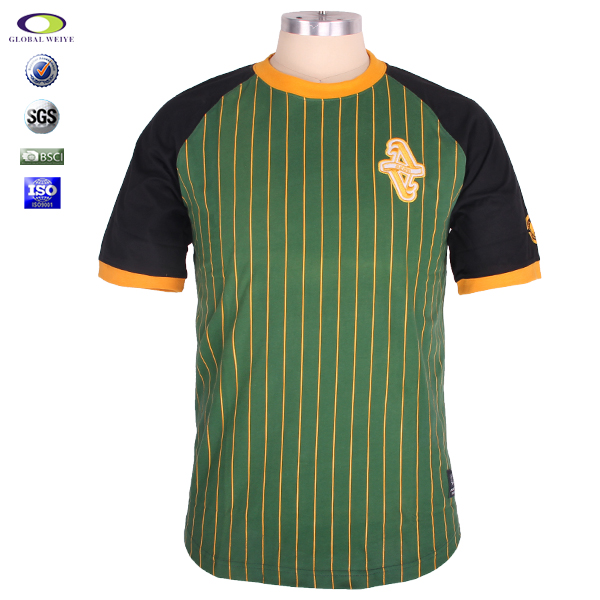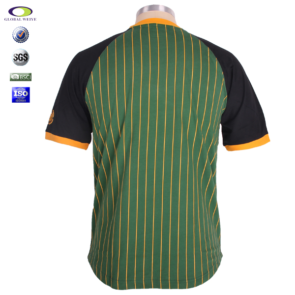 订制男士全涤圆领橙青条纹刺绣T恤衫短袖运动服 |