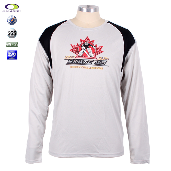 灰色100%涤纶网眼长袖冰球印花球服运动衫 |