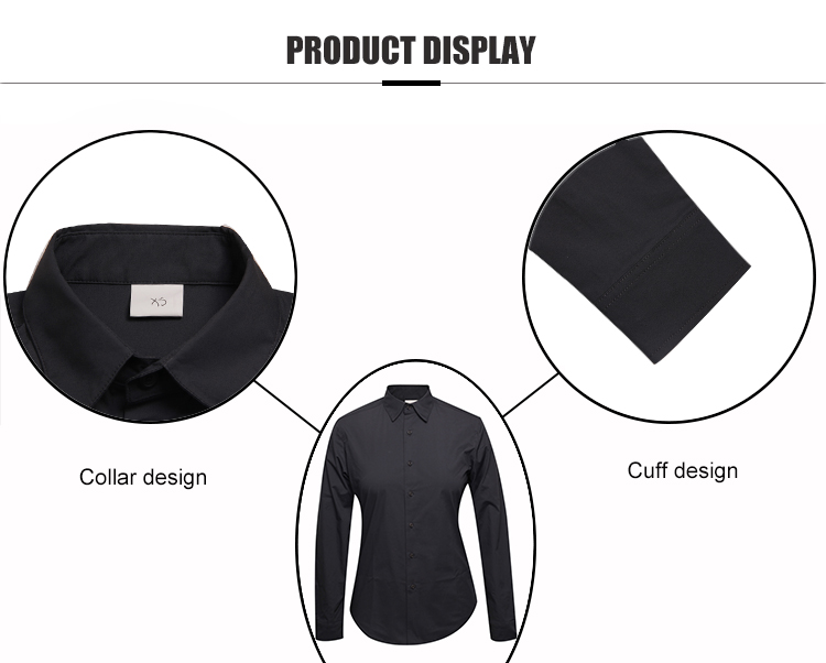 This black cotton shirt is the latest style and is suitable for autumn. Close waist, curved hem, can print your brand or the desired pattern
