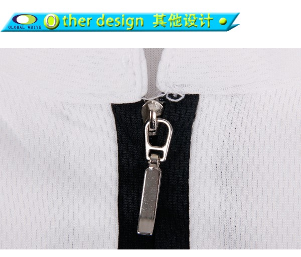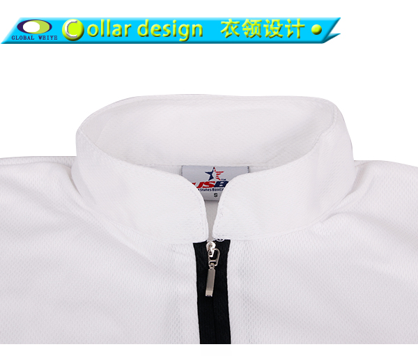 white ladies polo tops with zipper in middle, embroidery logo on front, slim fit, colors can be any. you can put logo on it, bottom end slit, neck tape on back. material, sizes and colors are customized.
