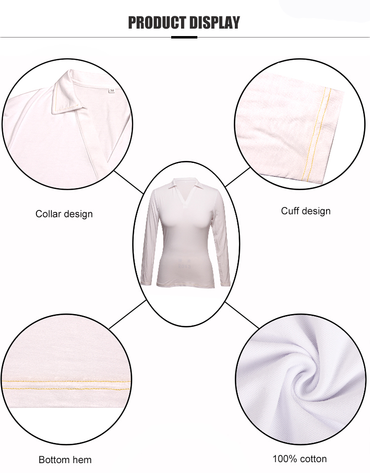 white ladies long sleeve polo shirts, blank style V neck, slim fit, mixed sizes from XS-XXXL
