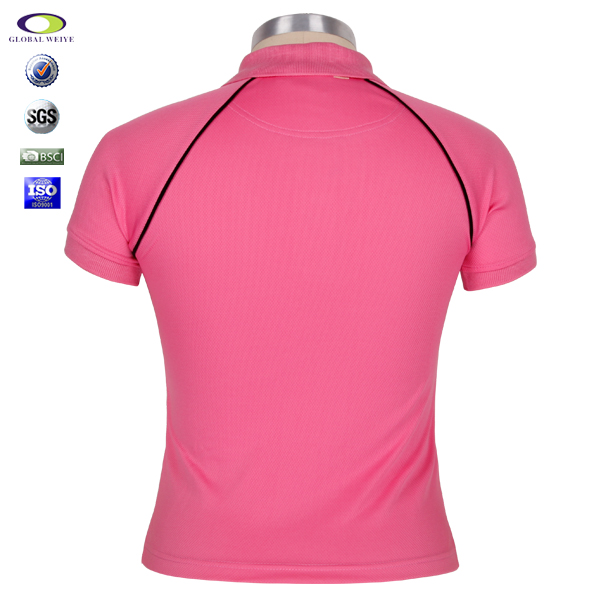 粉色POLO衫,采用100%涤纶速干网眼布料,透气快干、柔软,不褪色,防霉抗菌等功能,配上撞色滚边插肩款式,光身空白POLO衫可按照指定logo印花/绣花。