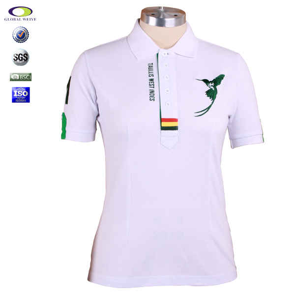 定制女士商务polo衫白色刺绣多纽扣翻领T恤衫 |