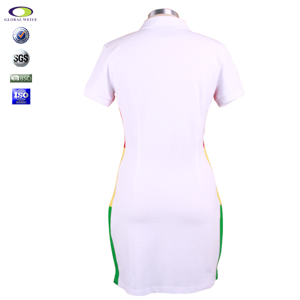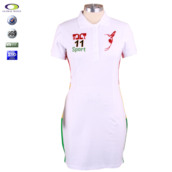 网站首页  > POLOT恤  > Polo衫  > 女式POLO衫  >  定制女士polo衫白色刺绣多纽扣翻领长身裙T恤衫