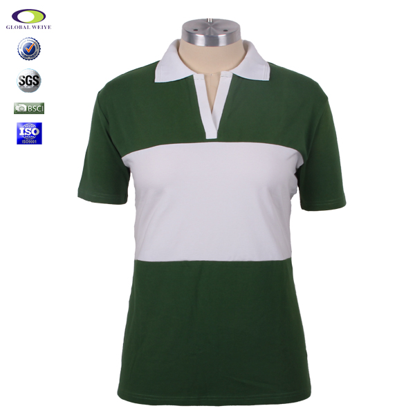 定制女士青白拼接polo衫无logo翻领T恤衫 |