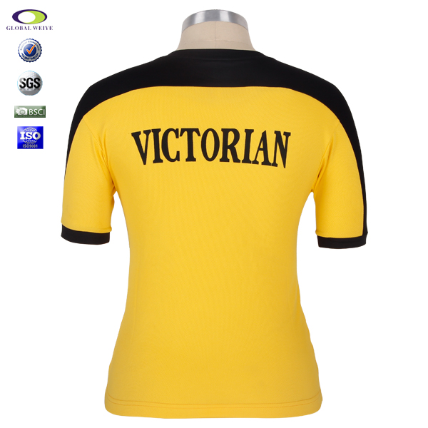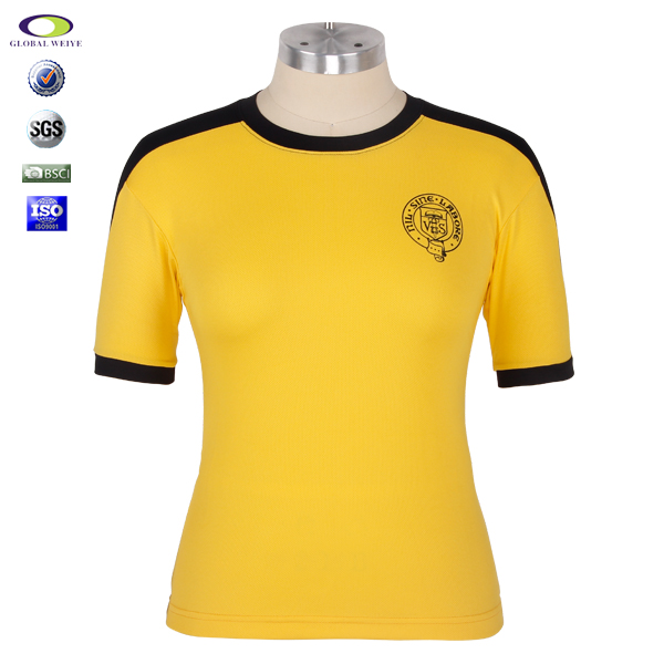 女士黑黄拼接印花T恤衫定制,采用拼接撞色设计,突显时尚魅力,专业纸样 标准裁剪,高性价网眼布  速干 坚牢耐用、抗皱免烫、不变形、热塑性强、环保染色 经典短袖时尚圆领款式 。