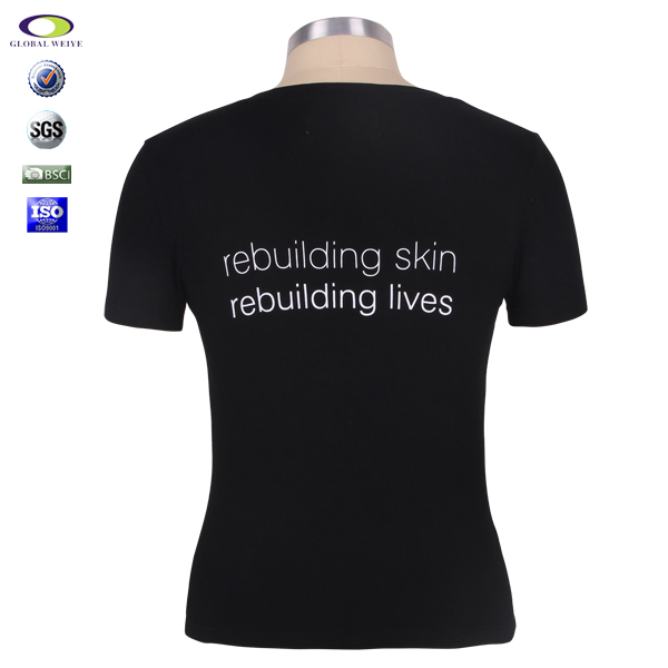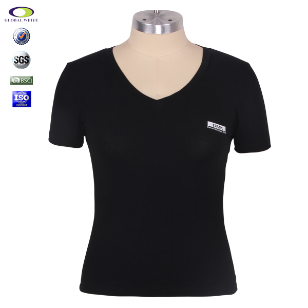 定制女士黑色V领短袖印花T恤衫