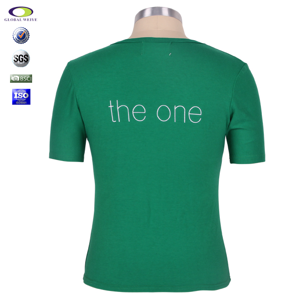 网站首页  > POLOT恤  > T恤  > 女士T恤  >  定制女士绿色V领短袖字母印花T恤衫