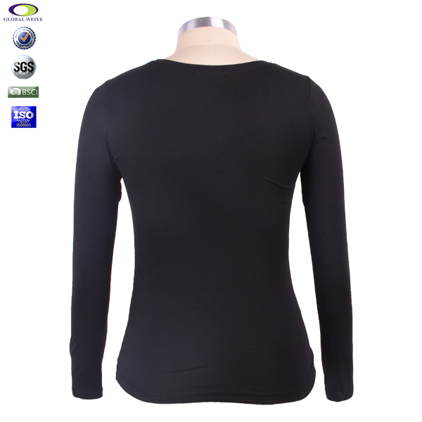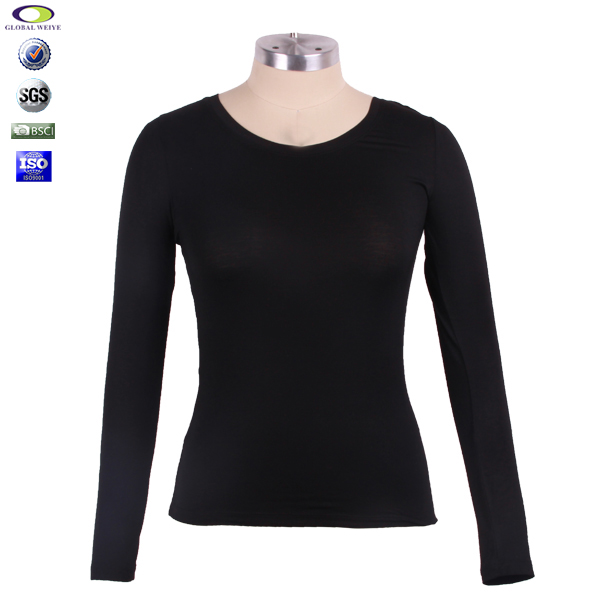 定制女士黑色圆领长袖T恤衫空白修身打底衫