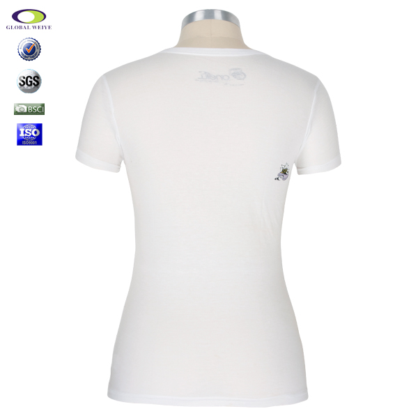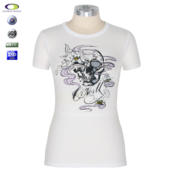 女士白色修身印花圆领短袖T恤衫定制 |