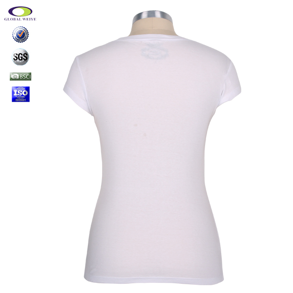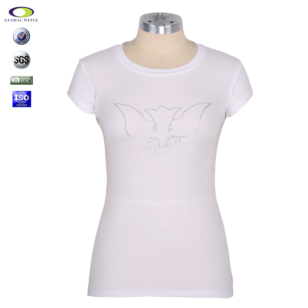 女士白色修身烫钻圆领短袖T恤衫定制 |