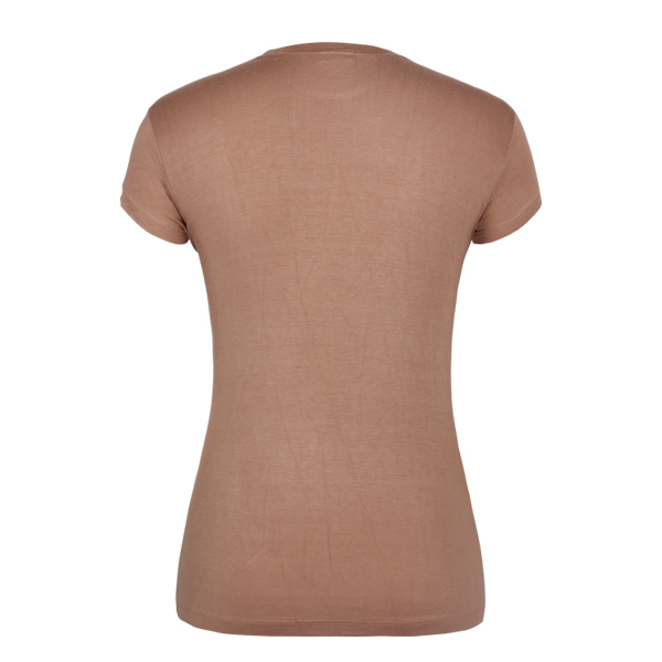 咖啡色印花女士圆领短袖T恤衫订制 |