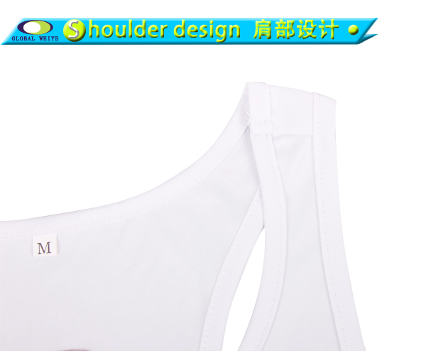 This white tank top women's 100% polyester mesh, silk print with front. Suitable for outdoor sports, of course, whether you like this one or not, I can only tell you that this is what my guests do here, not our own products. If you have your own design, we can help you make it.
